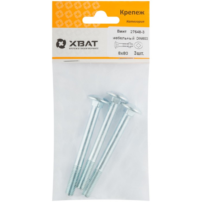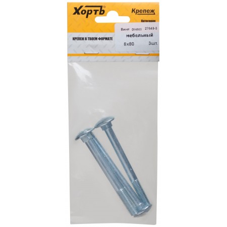 Винт мебельный (DIN 603) 8х80 (фасовка 3 шт) (27648-3)