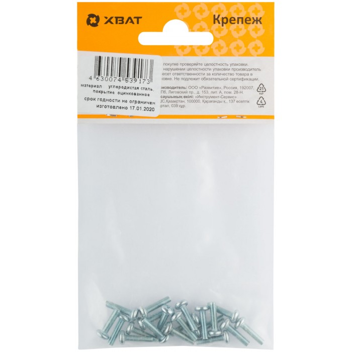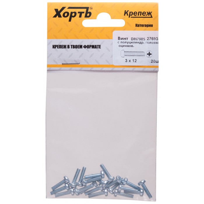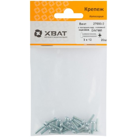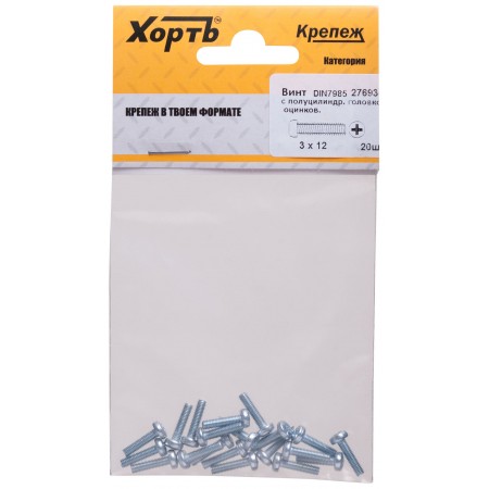 Винт с полуцилиндрич. головкой с полной резьбой оцинков. DIN 7985 3х12 20 шт.(фасовка) (27693-2)