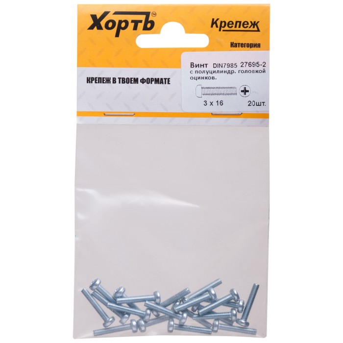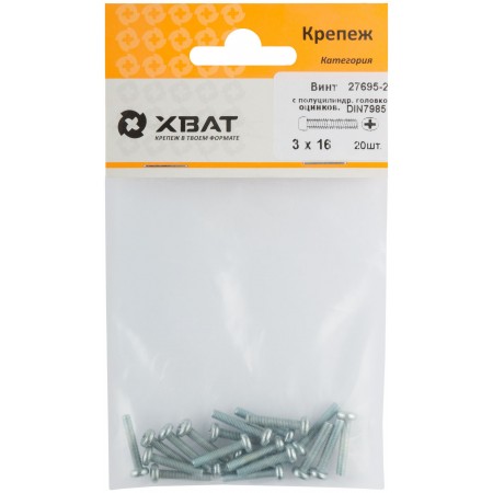 Винт с полуцилиндрич. головкой с полной резьбой оцинков. DIN 7985 3х16 20 шт.(фасовка) (27695-2)