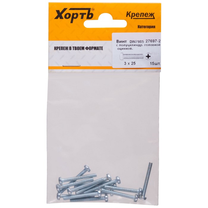 Винт с полуцилиндрич. головкой с полной резьбой оцинков. DIN 7985 3х25 15 шт.(фасовка) (27697-2)