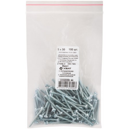Винт с полуцилиндрич. головкой с полной резьбой оцинков. DIN 7985 3х30 100 шт Фасовка (27698-0)