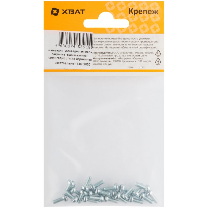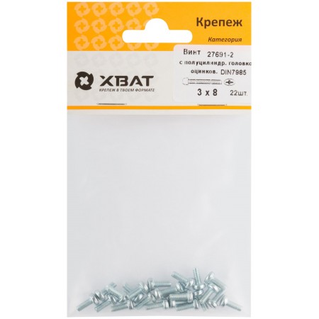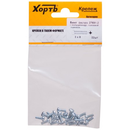 Винт с полуцилиндрич. головкой с полной резьбой оцинков. DIN 7985 3х8 22 шт.(фасовка) (27691-2)