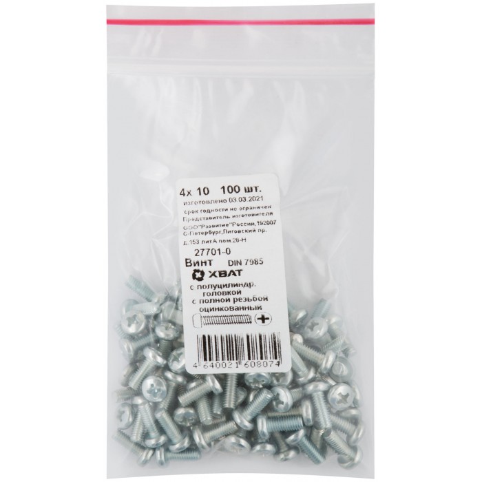 Винт с полуцилиндрич. головкой с полной резьбой оцинков. DIN 7985 4х10 100 шт Фасовка (27701-0)