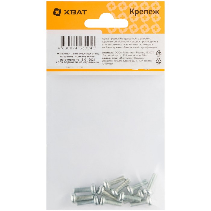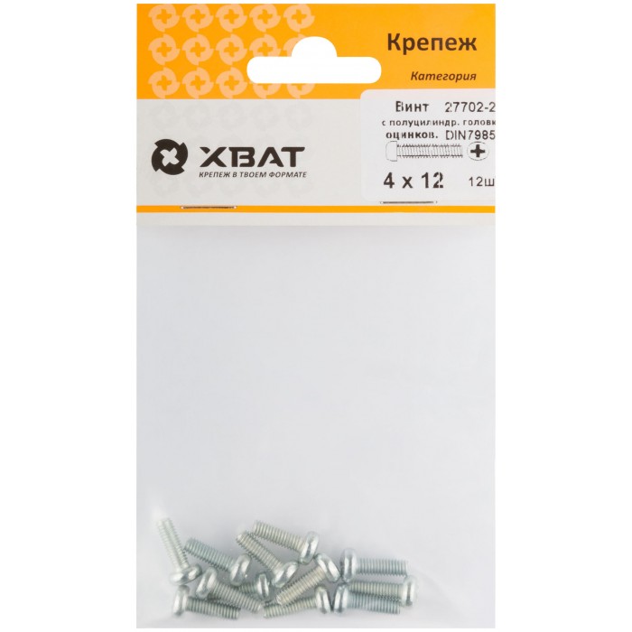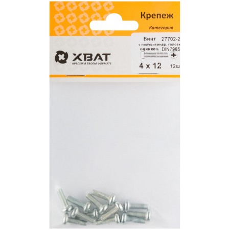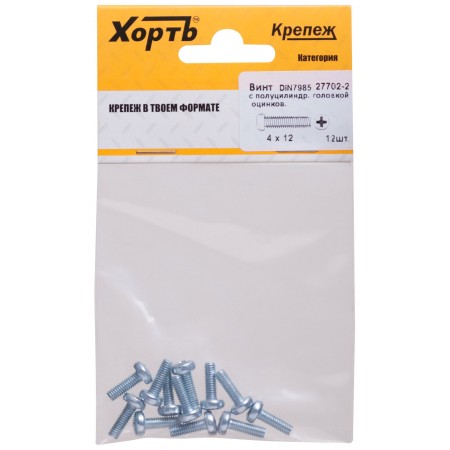 Винт с полуцилиндрич. головкой с полной резьбой оцинков. DIN 7985 4х12 12 шт.(фасовка) (27702-2)