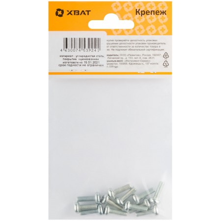 Описание: винт с метрической резьбой и полуцилидрической головкой с крестообразным шлицем. Изготовлен из стали, оцинкован. Применяется для соединения элементов строительных материалов. Популярен при изготовлении и ремонте мебели.