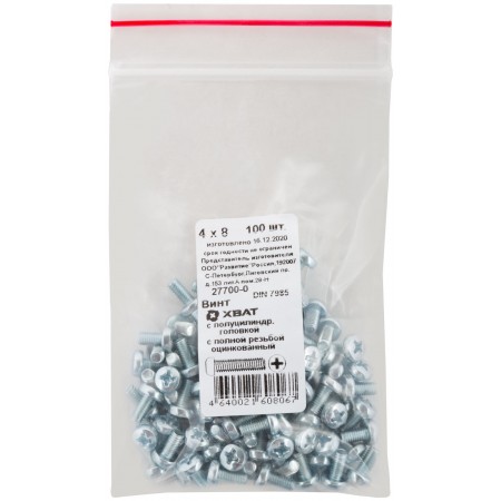 Винт с полуцилиндрич. головкой с полной резьбой оцинков. DIN 7985 4х8 100 шт Фасовка (27700-0)