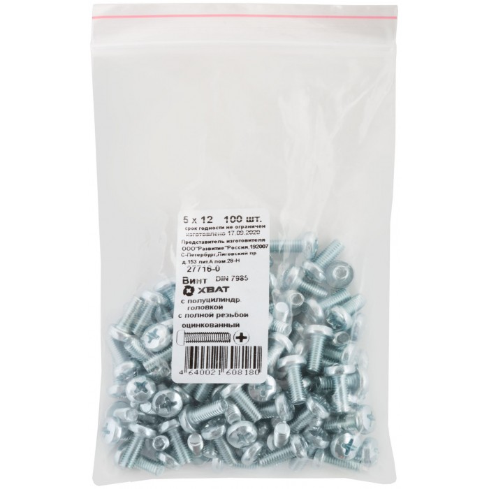 Винт с полуцилиндрич. головкой с полной резьбой оцинков. DIN 7985 5х12 100 шт Фасовка (27716-0)