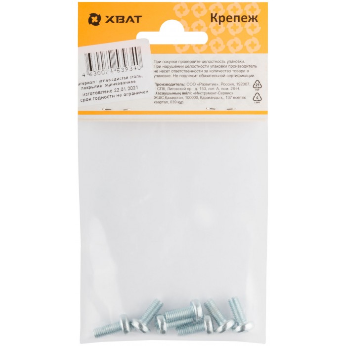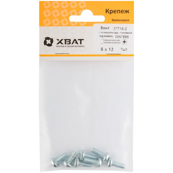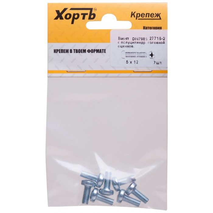 Винт с полуцилиндрич. головкой с полной резьбой оцинков. DIN 7985 5х12 7 шт.(фасовка) (27716-2)