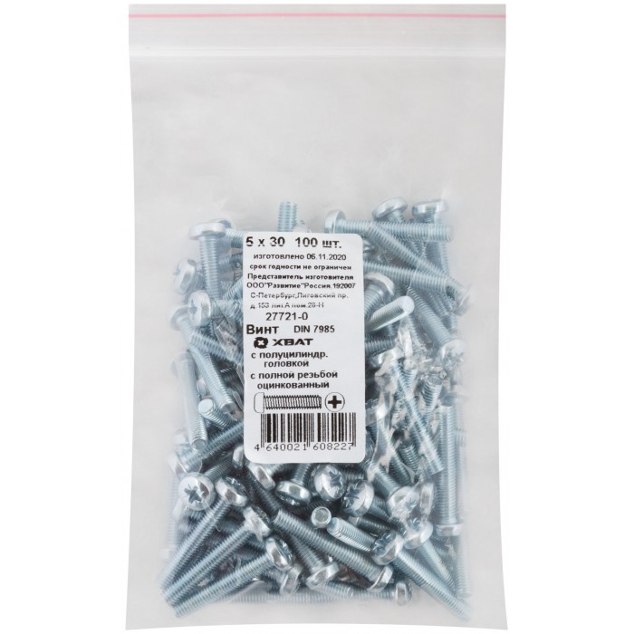 Винт с полуцилиндрич. головкой с полной резьбой оцинков. DIN 7985 5х30 100 шт Фасовка (27721-0)