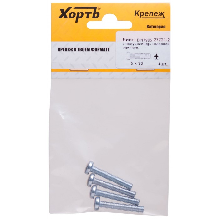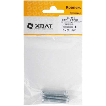 Винт с полуцилиндрич. головкой с полной резьбой оцинков. DIN 7985 5х30 4 шт.(фасовка) (27721-2)
