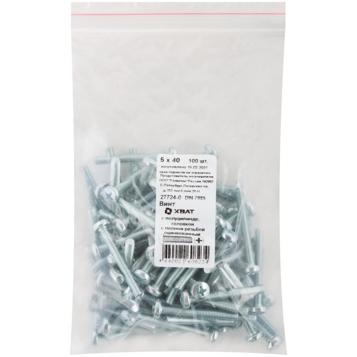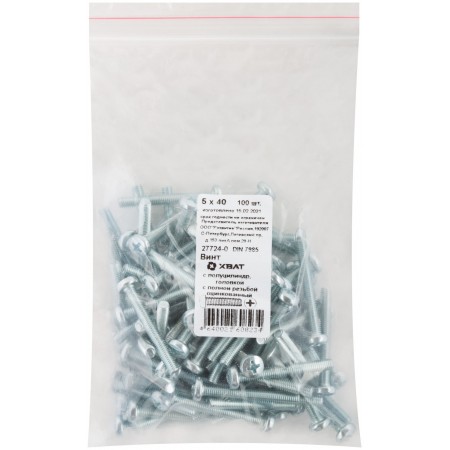 Винт с полуцилиндрич. головкой с полной резьбой оцинков. DIN 7985 5х40 100 шт Фасовка (27724-0)