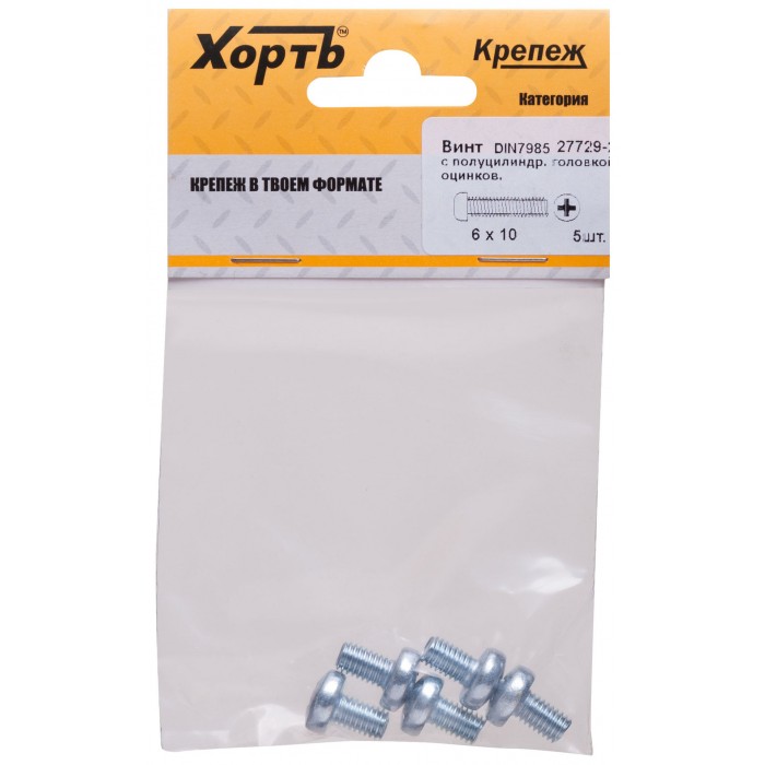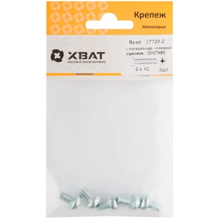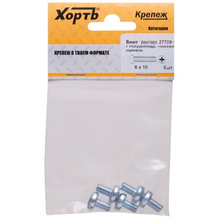 Винт с полуцилиндрич. головкой с полной резьбой оцинков. DIN 7985 6х10 5 шт.(фасовка) (27729-2)