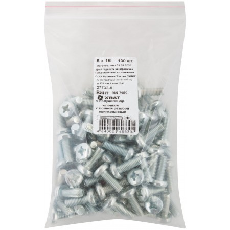 Винт с полуцилиндрич. головкой с полной резьбой оцинков. DIN 7985 6х16 100 шт Фасовка (27732-0)