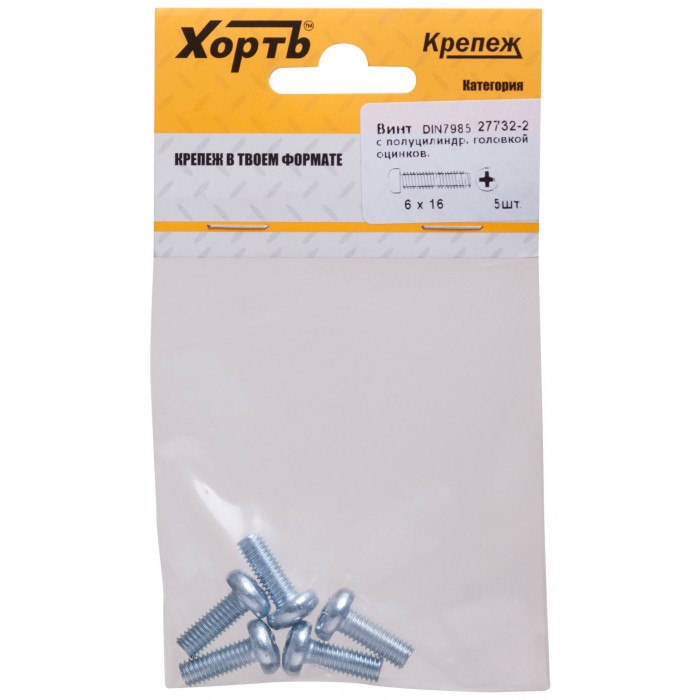 Винт с полуцилиндрич. головкой с полной резьбой оцинков. DIN 7985 6х16 5 шт.(фасовка) (27732-2)
