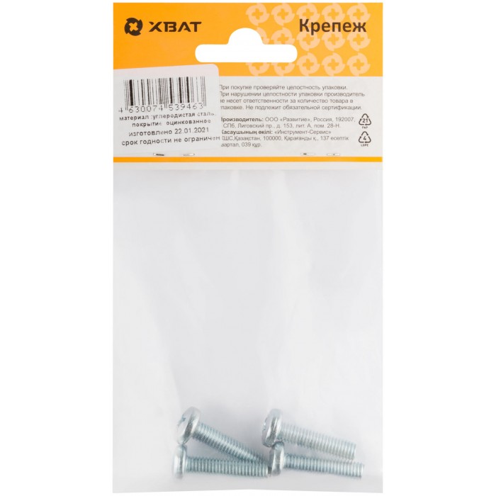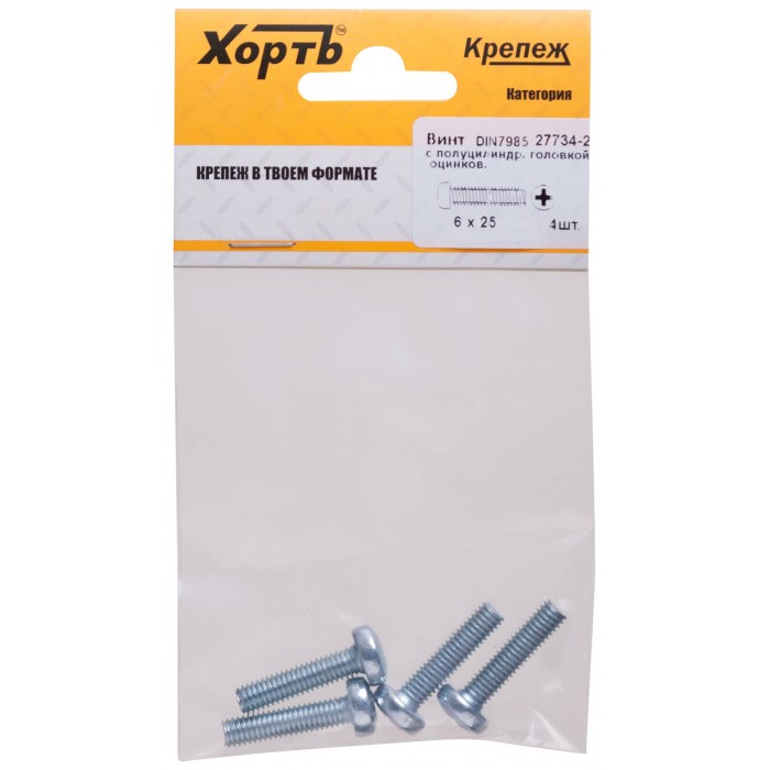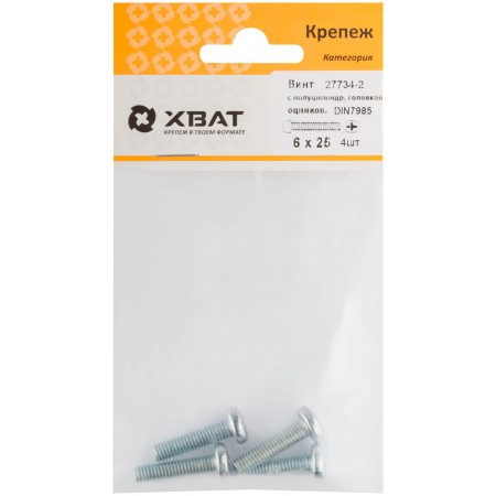 Винт с полуцилиндрич. головкой с полной резьбой оцинков. DIN 7985 6х25 4 шт.(фасовка) (27734-2)
