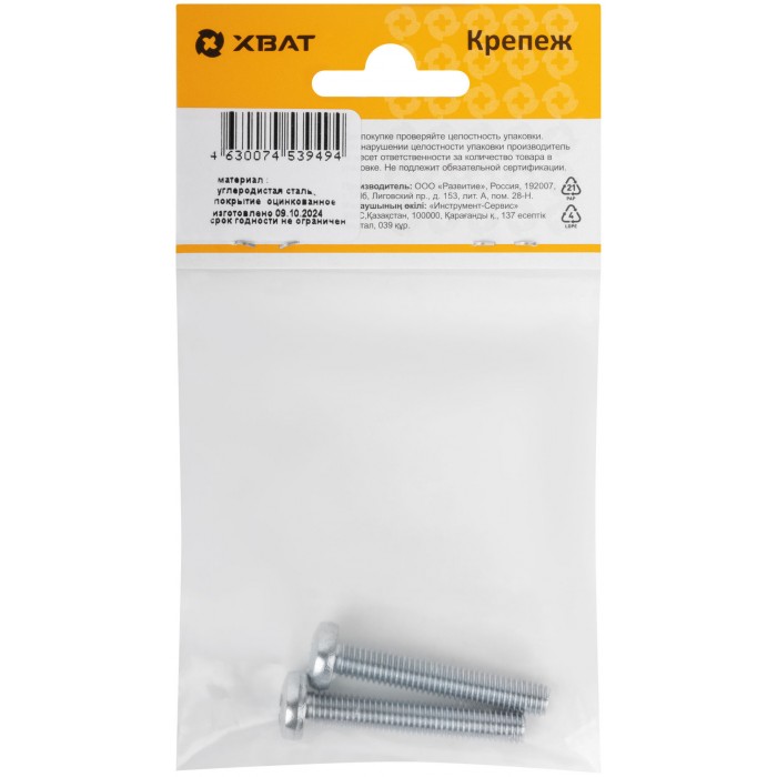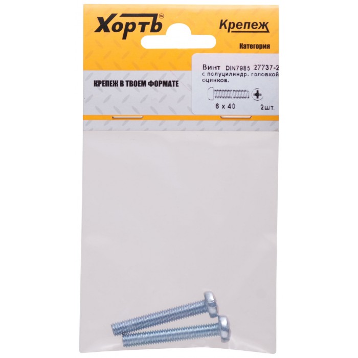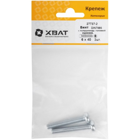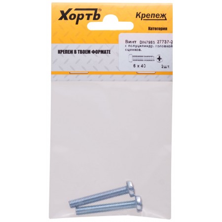 Винт с полуцилиндрич. головкой с полной резьбой оцинков. DIN 7985 6х40 2 шт.(фасовка) (27737-2)