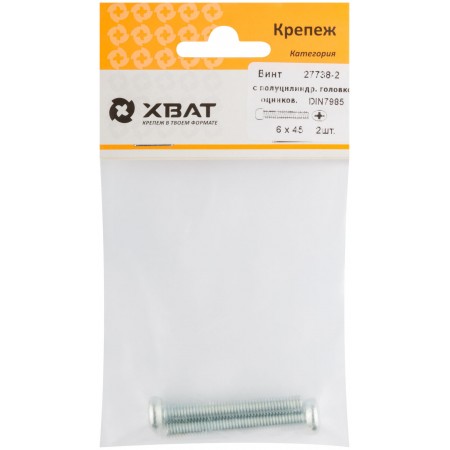 Винт с полуцилиндрич. головкой с полной резьбой оцинков. DIN 7985 6х45 2 шт.(фасовка) (27738-2)