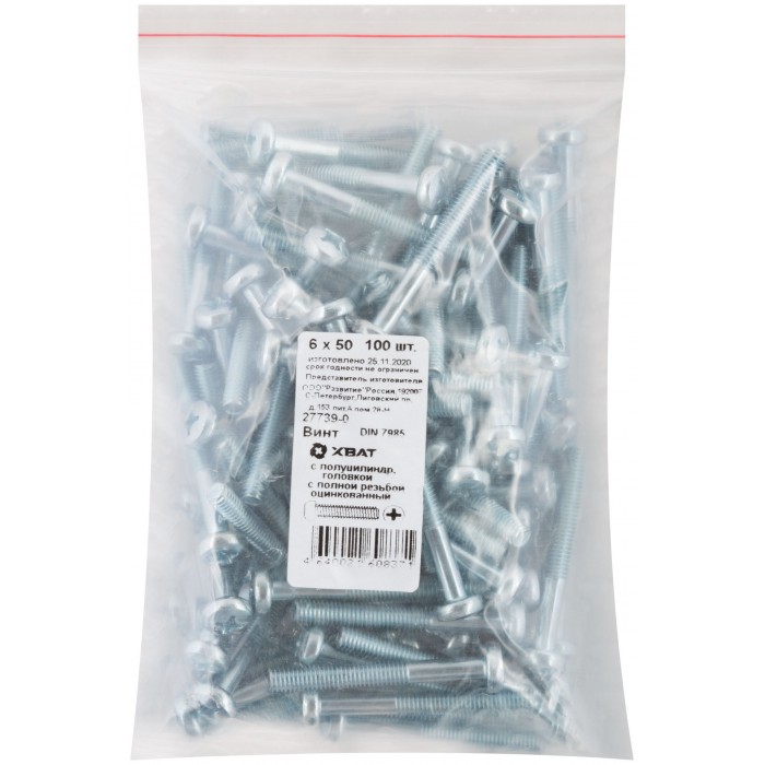Винт с полуцилиндрич. головкой с полной резьбой оцинков. DIN 7985 6х50 100 шт Фасовка (27739-0)