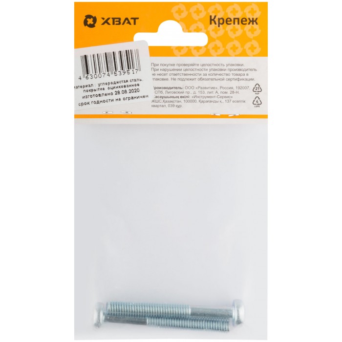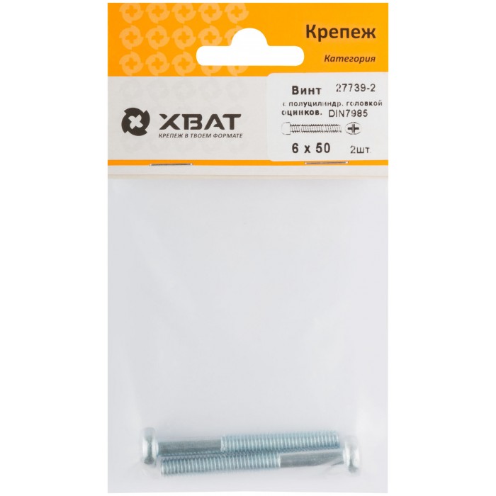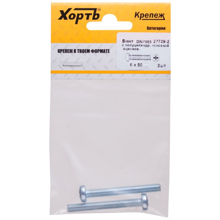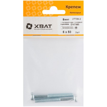 Винт с полуцилиндрич. головкой с полной резьбой оцинков. DIN 7985 6х50 2 шт.(фасовка) (27739-2)