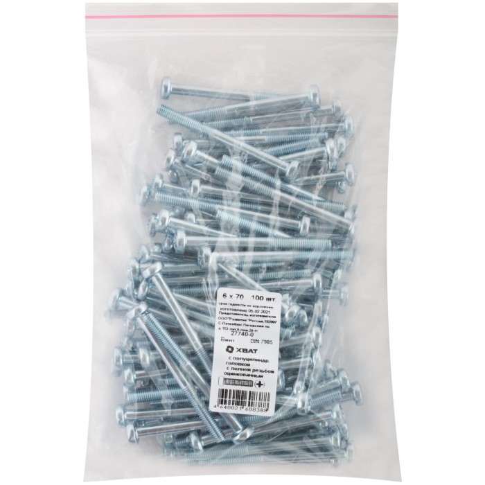 Винт с полуцилиндрич. головкой с полной резьбой оцинков. DIN 7985 6х70 100 шт Фасовка (27740-0)