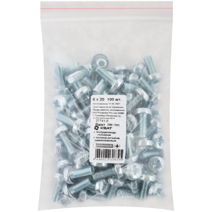 Винт с полуцилиндрич. головкой с полной резьбой оцинков. DIN 7985 8х20 100 шт Фасовка (27741-0)
