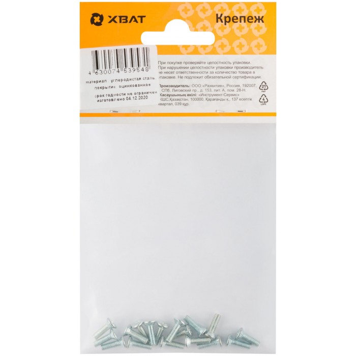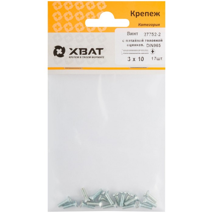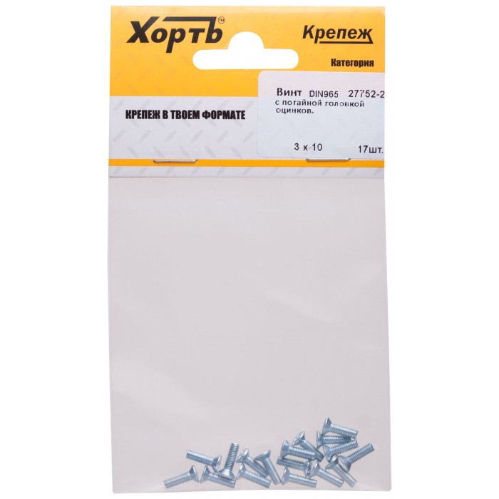 Винт с потайной головкой с полной резьбой оцинкованный DIN 965 3х10 17 шт.(фасовка) (27752-2)