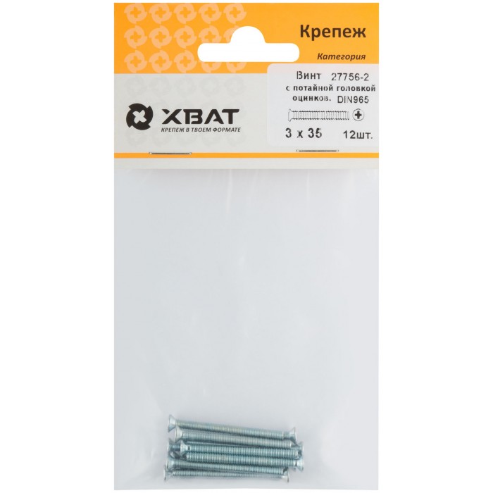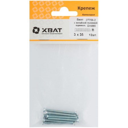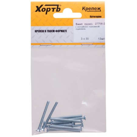 Винт с потайной головкой с полной резьбой оцинкованный DIN 965 3х35 12 шт.(фасовка) (27756-2)