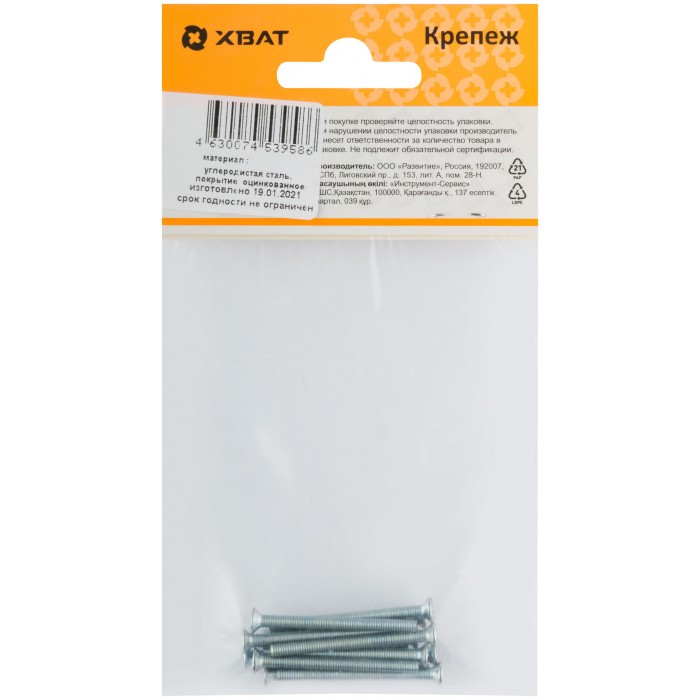 Описание: винт с метрической резьбой и потайной головкой с крестообразным шлицем. Изготовлен из стали, оцинкован. Применяется для соединения элементов строительных материалов. Популярен при изготовлении и ремонте мебели.