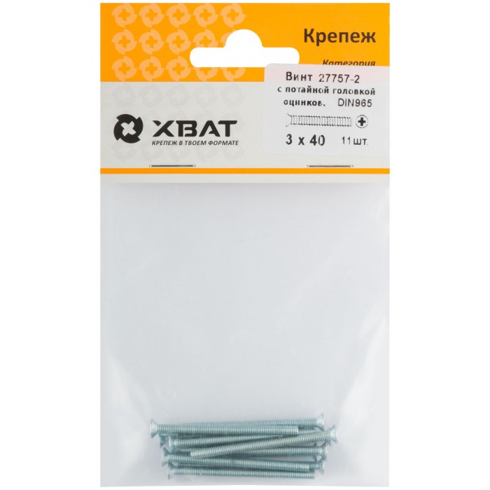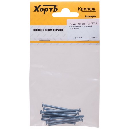 Винт с потайной головкой с полной резьбой оцинкованный DIN 965 3х40 11 шт.(фасовка) (27757-2)