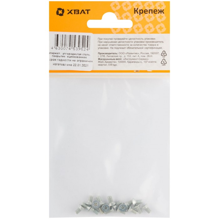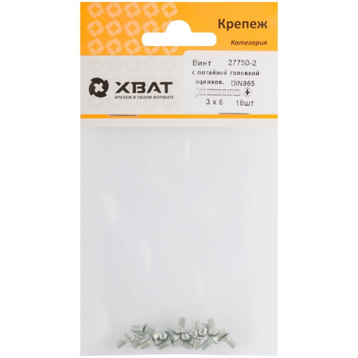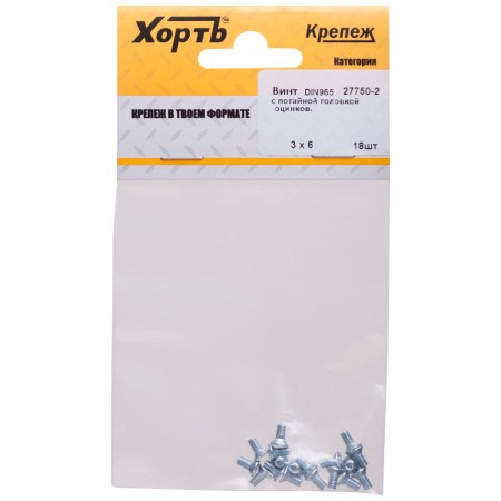 Винт с потайной головкой с полной резьбой оцинкованный DIN 965 3х6 18 шт.(фасовка) (27750-2)