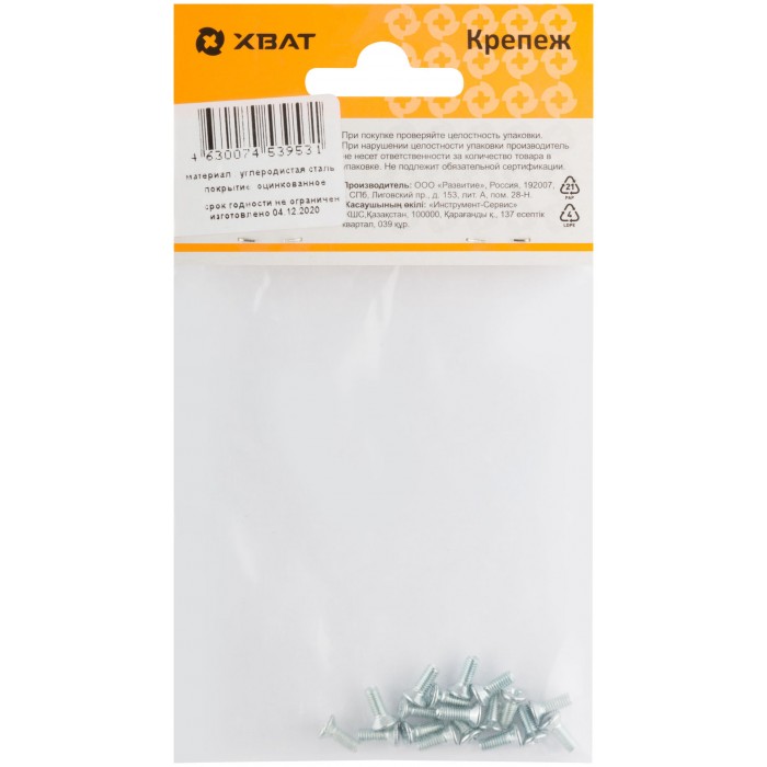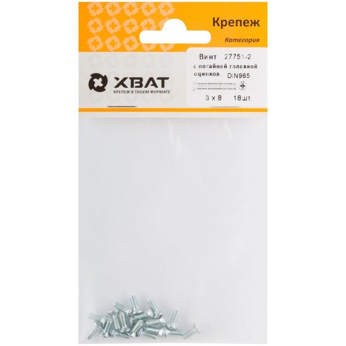 Винт с потайной головкой с полной резьбой оцинкованный DIN 965 3х8 18 шт.(фасовка) (27751-2)