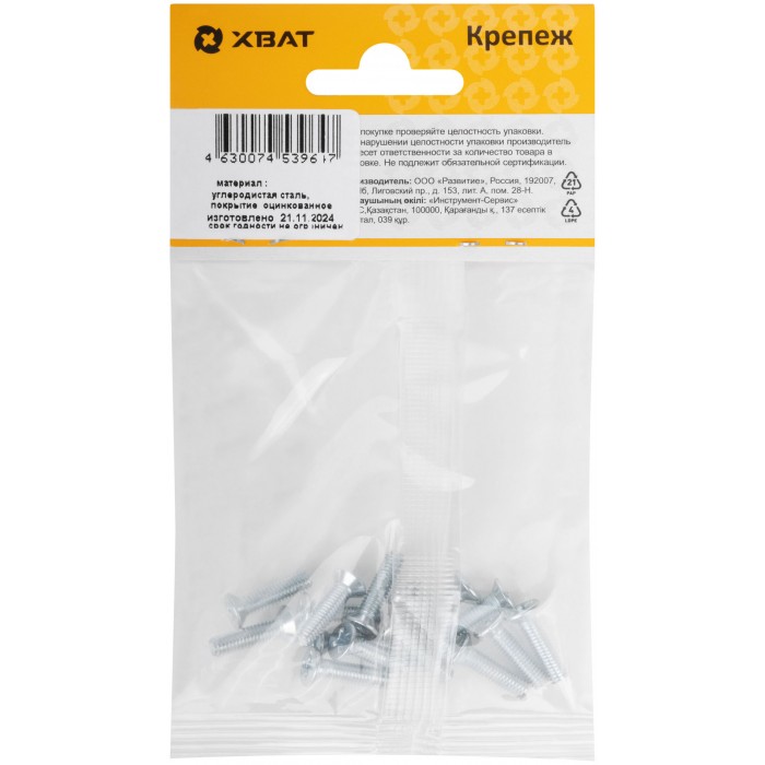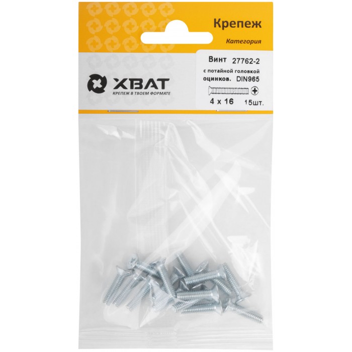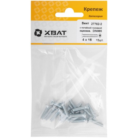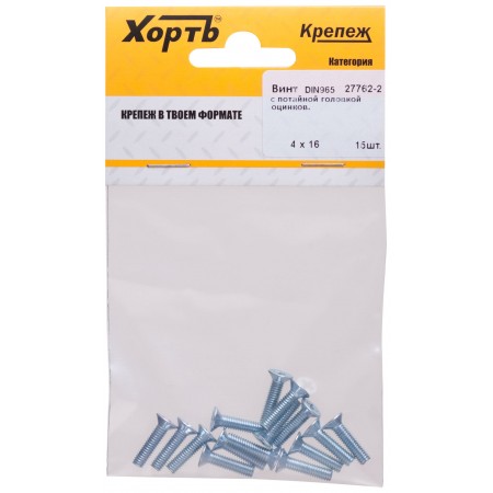 Винт с потайной головкой с полной резьбой оцинкованный DIN 965 4х16 15 шт.(фасовка) (27762-2)
