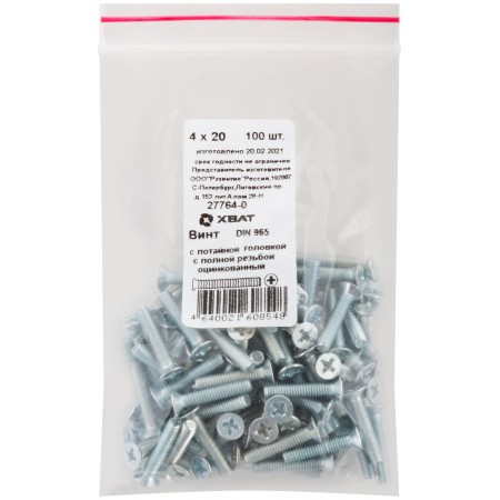 Винт с потайной головкой с полной резьбой оцинкованный DIN 965 4х20 100 шт Фасовка (27764-0)
