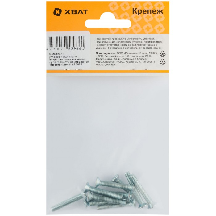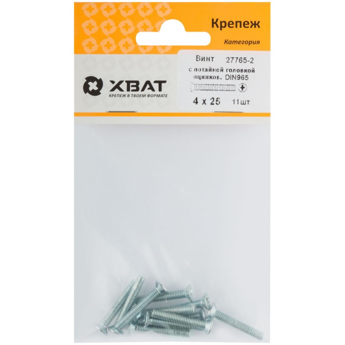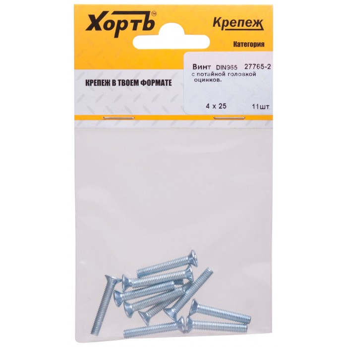 Винт с потайной головкой с полной резьбой оцинкованный DIN 965 4х25 11 шт.(фасовка) (27765-2)