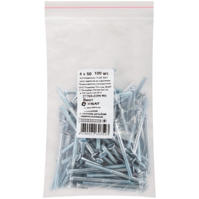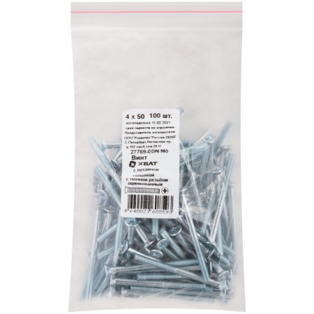 Винт с потайной головкой с полной резьбой оцинкованный DIN 965 4х50 100 шт Фасовка (27769-0)