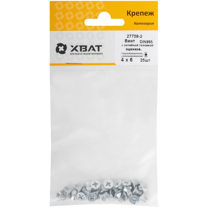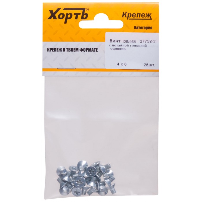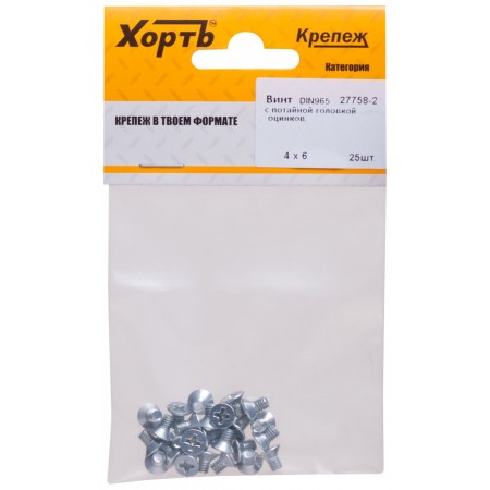 Винт с потайной головкой с полной резьбой оцинкованный DIN 965 4х6 25 шт.(фасовка) (27758-2)