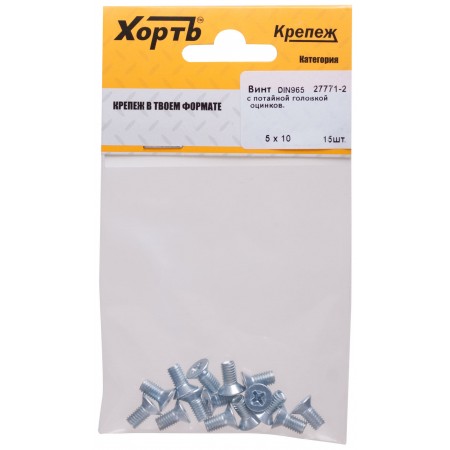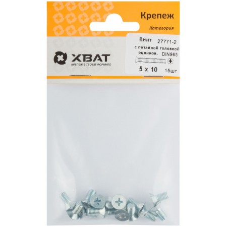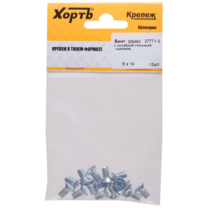Винт с потайной головкой с полной резьбой оцинкованный DIN 965 5х10 15 шт.(фасовка) (27771-2)
