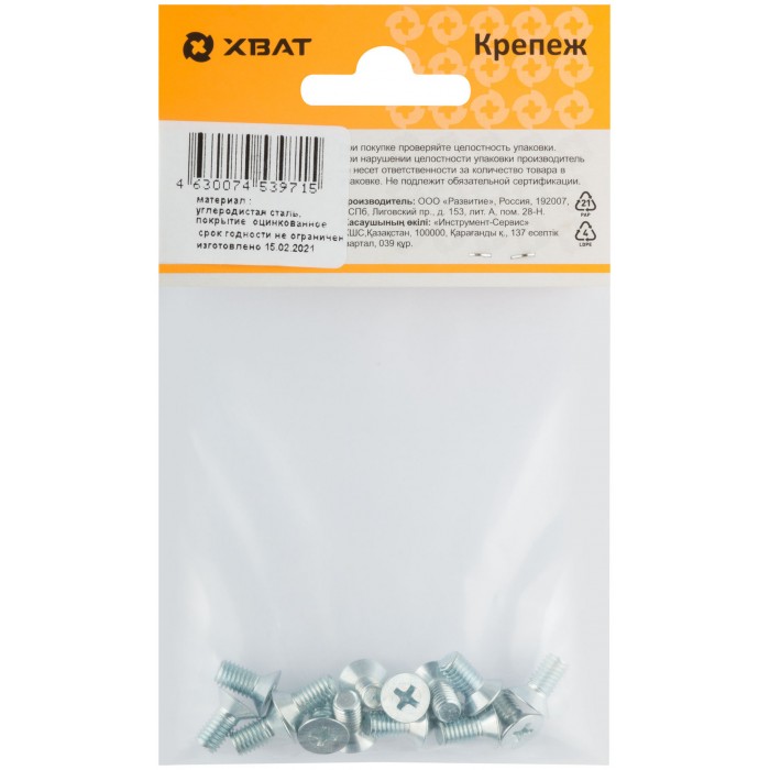 Описание: винт с метрической резьбой и потайной головкой с крестообразным шлицем. Изготовлен из стали, оцинкован. Применяется для соединения элементов строительных материалов. Популярен при изготовлении и ремонте мебели.