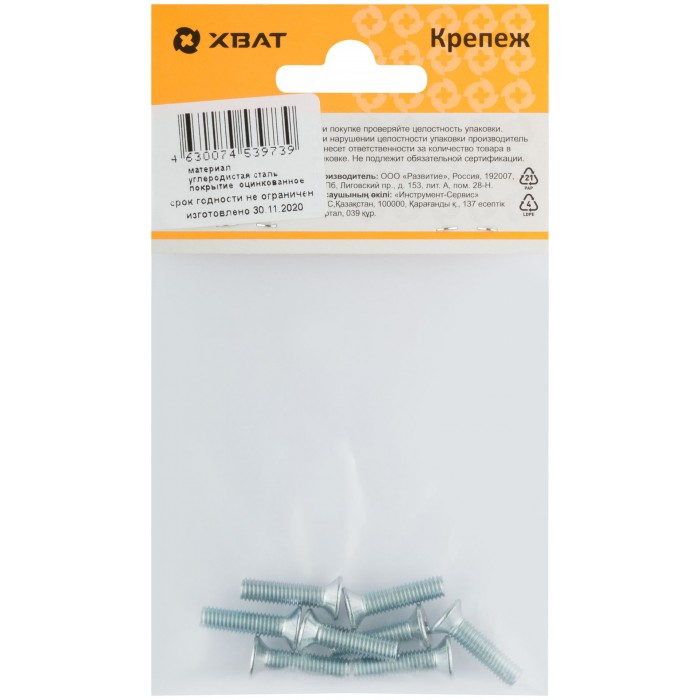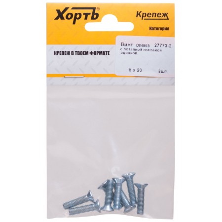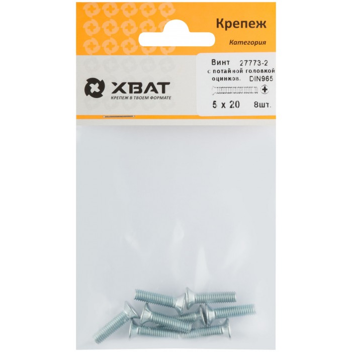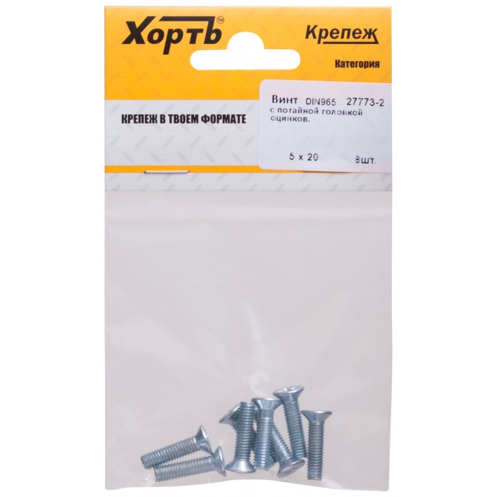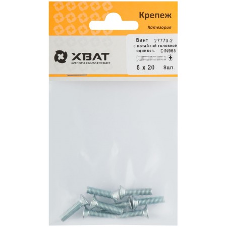 Винт с потайной головкой с полной резьбой оцинкованный DIN 965 5х20 8 шт.(фасовка) (27773-2)