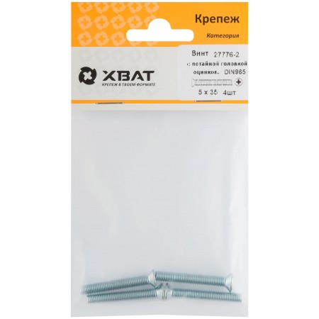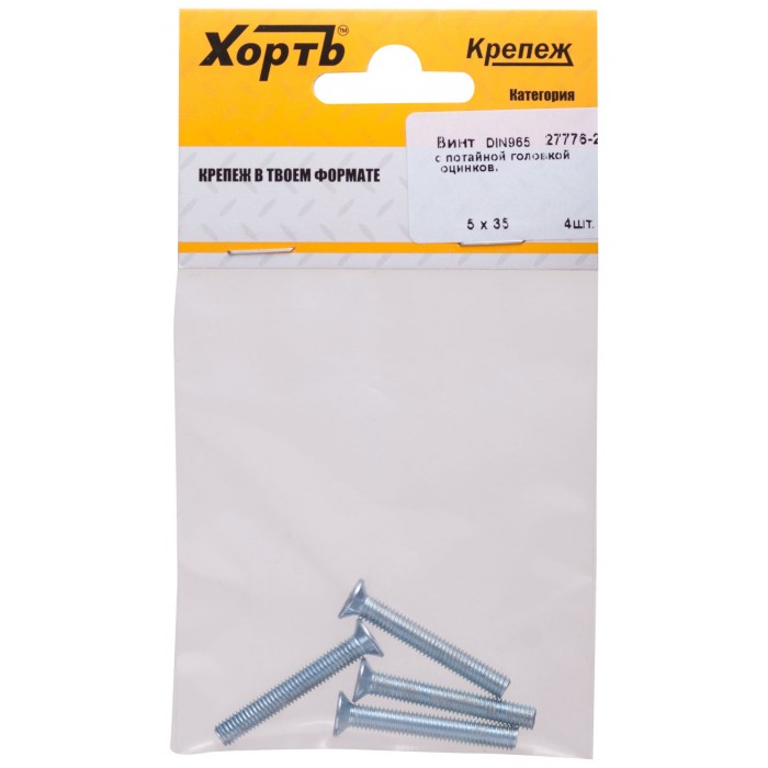 Винт с потайной головкой с полной резьбой оцинкованный DIN 965 5х35 4 шт.(фасовка) (27776-2)