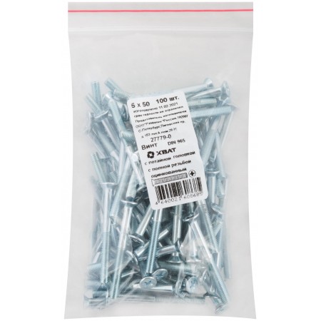 Винт с потайной головкой с полной резьбой оцинкованный DIN 965 5х50 100 шт Фасовка (27779-0)