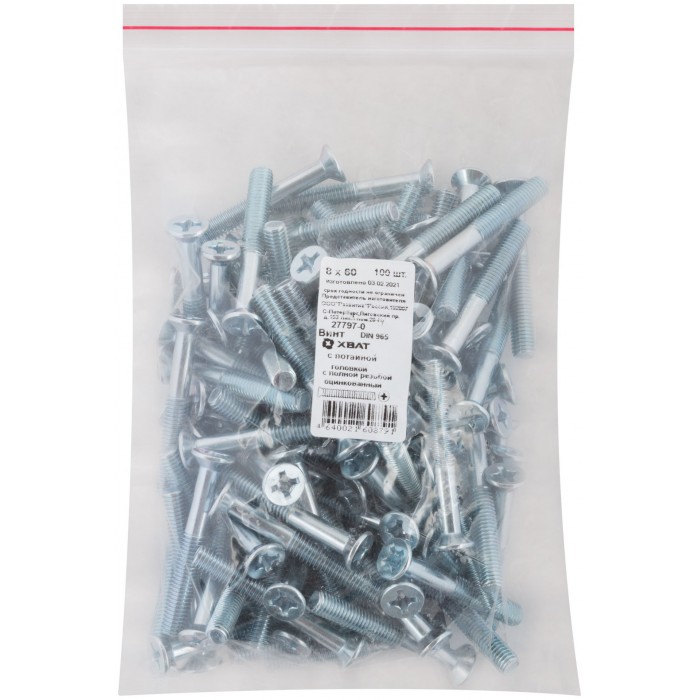 Винт с потайной головкой с полной резьбой оцинкованный DIN 965 8х60 100 шт Фасовка (27797-0)