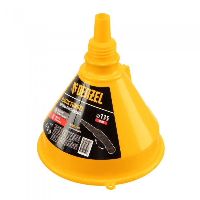 Воронка пластиковая 135 мм с металлическим ситом, гибким наконечником и непроливайкой Denzel (537210)