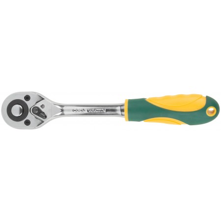 Для торцевых головок. Функция быстрого отсоединения головки. Материал: хром-ванадиевая сталь, пластиковая обрезиненная ручка. Упаковка: пластиковый подвес