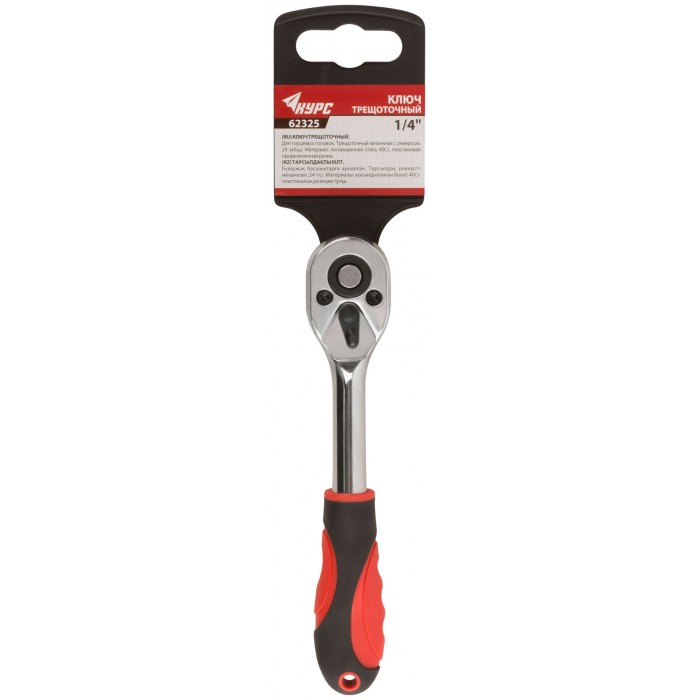 Вороток (трещотка), механизм легированная сталь 40Cr, пластиковая прорезиненная ручка, 1/4", 24 зубца