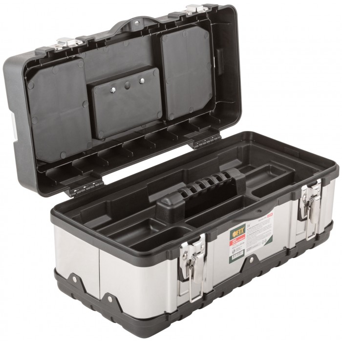 Стенки и замки из нержавеющей стали. Съемный лоток. Крышка с двумя встроенными органайзерами. Усиленная конструкция.