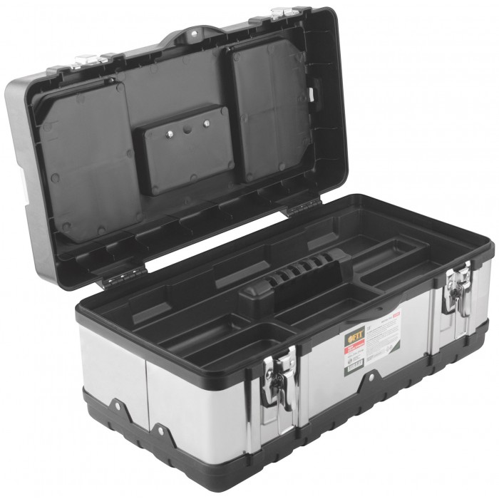 Стенки и замки из нержавеющей стали. Съемный лоток. Крышка с двумя встроенными органайзерами. Усиленная конструкция.