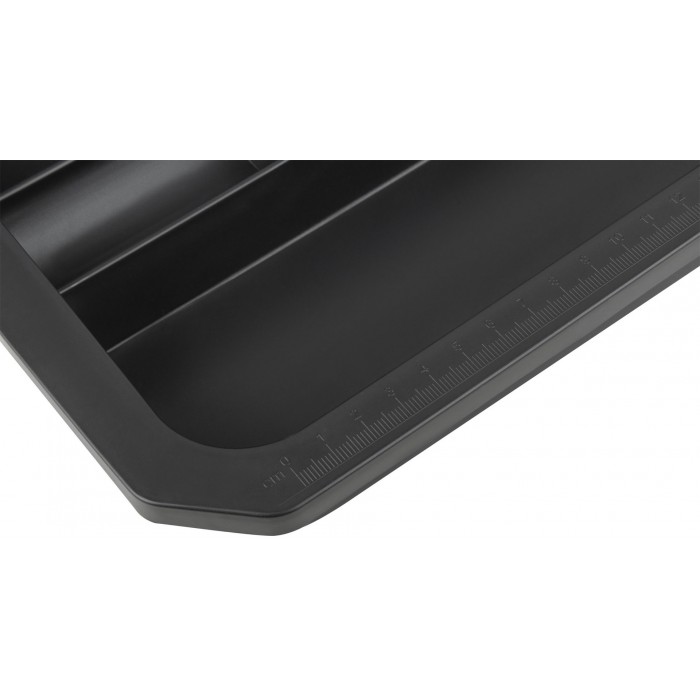 Широкая ручка из алюминиевого сплава. Замки из нержавеющей стали. Крышка с тремя встроенными органайзерами, съемный лоток. Усиленная