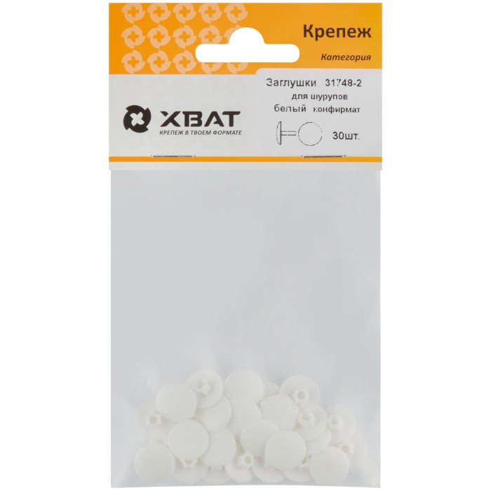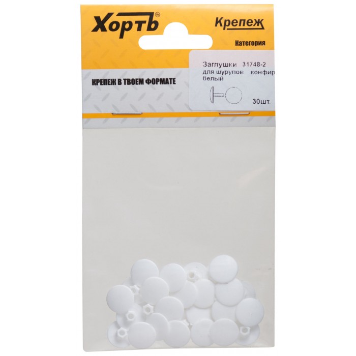 Заглушки под "конфирмат" белый (фасовка 30 шт. ) (31748-2)