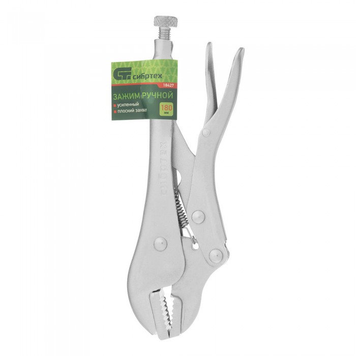 Зажим ручной, усиленный, плоский захват, 180 мм Сибртех (18427)